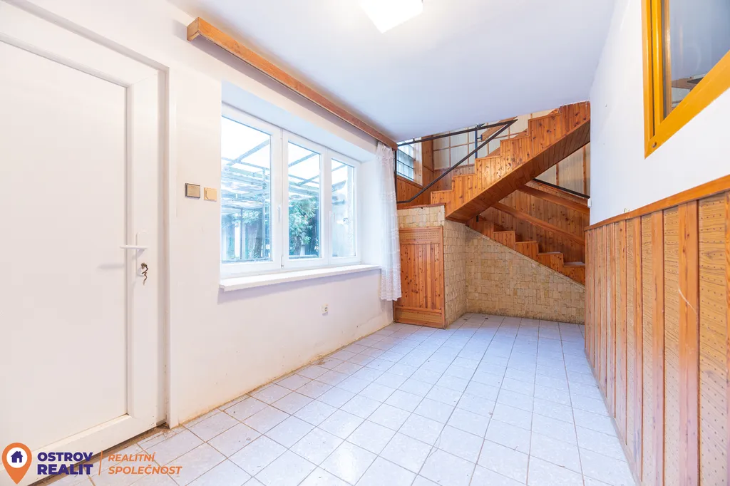 Tato druhá koupelna zároveň slouží jako technická místnost, protože je v ní umístěn jak kotel na tuhá paliva, tak plynový kotel. Z této části je přímý vstup na dvůr. Na zahradu je zároveň vstup i přes chodbu domu.