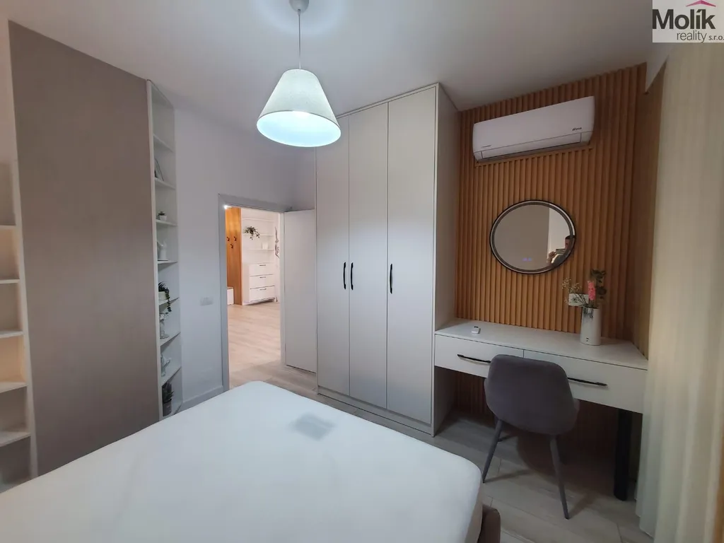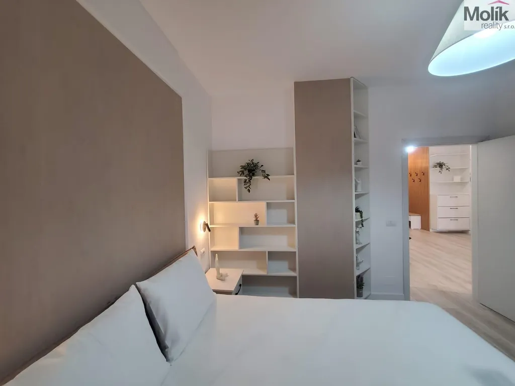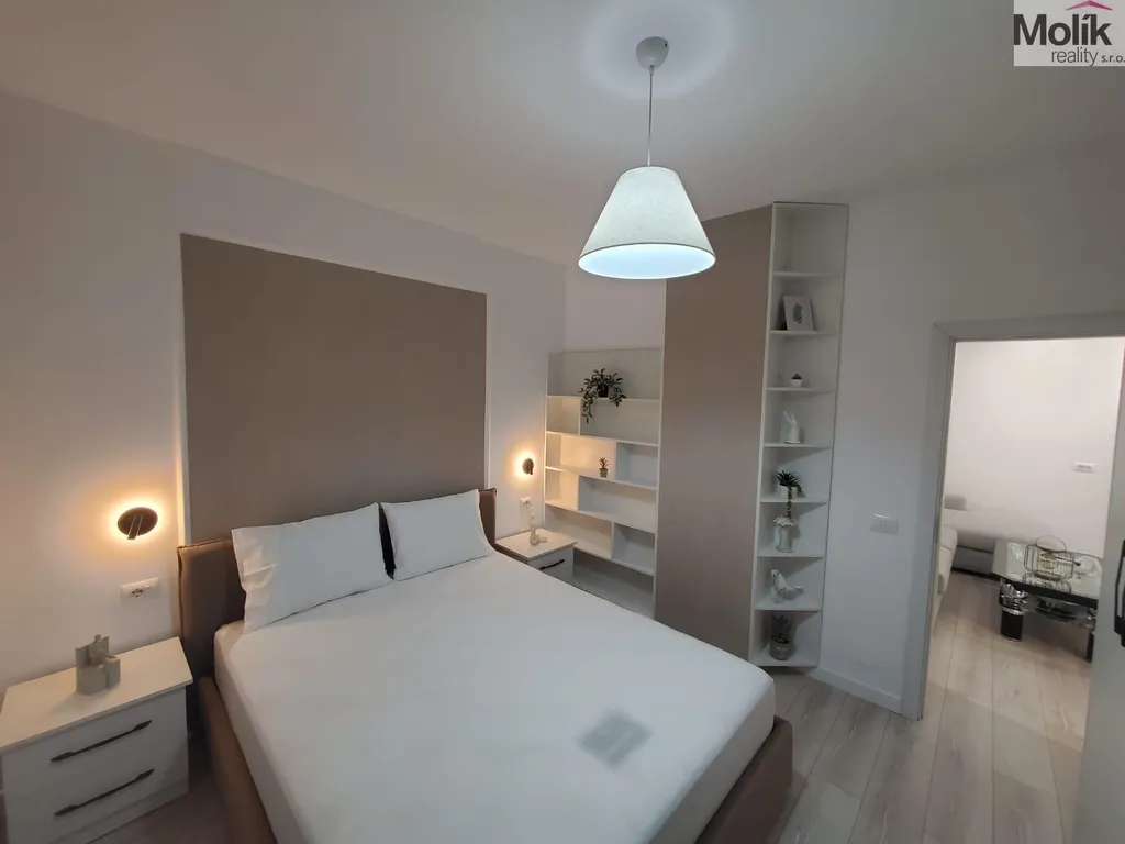 Interiér bytu je navržen v nadčasovém stylu s důrazem na světlo, čisté linie a kvalitu. Dominantou je světlý obývací prostor s designovou bílou kuchyňskou linkou, jídelním stolem a pohodlným obývacím koutem. Ložnice je světlá a vzdušná, ideální pro maximální komfort a klid. Moderní koupelna je vybavena kvalitními sanitárními prvky a elegantním sprchovým koutem.