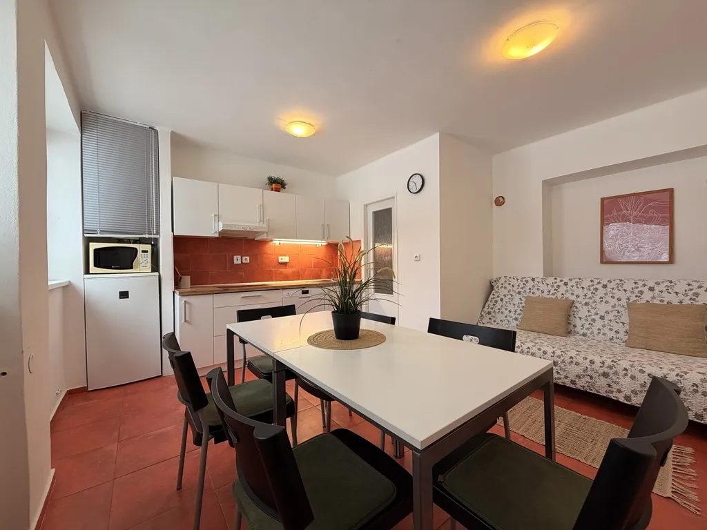 Apartmán je plně vybavený – disponuje vlastní koupelnou, WC i kuchyňkou a je součástí jednoho ze dvou samostatných objektů. Hostům je k dispozici prostorná společenská místnost a po domluvě také infrasauna, což výrazně zvyšuje komfort pobytu i celkovou obsazenost.