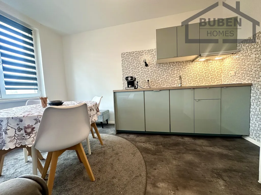 V bytě se nachází vybavení: kuchyňská linka včetně myčky, lednice, varné desky a digestoře (spotřebiče v záruce) a dále vybavení viz foto.