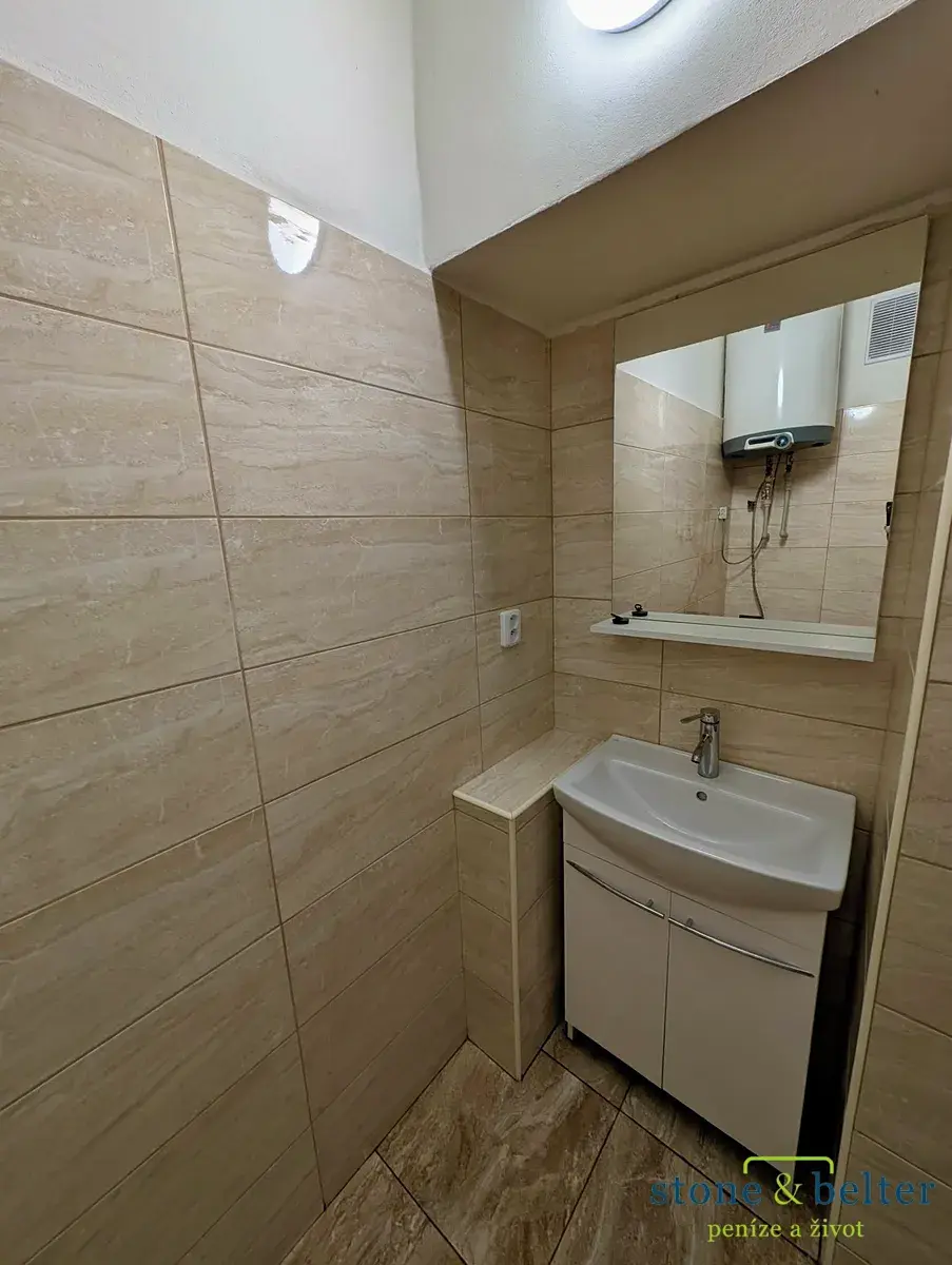 Dispozice bytu zahrnuje prostornou ložnici, světlou kuchyň s obývacím prostorem dále chodbu, koupelnu, samostatné WC a komoru. Vytápění je zajištěno plynovými gamaty, ohřev vody elektrickým bojlerem. Součástí domu je udržovaná společná zahrada. Parkování přímo před domem.