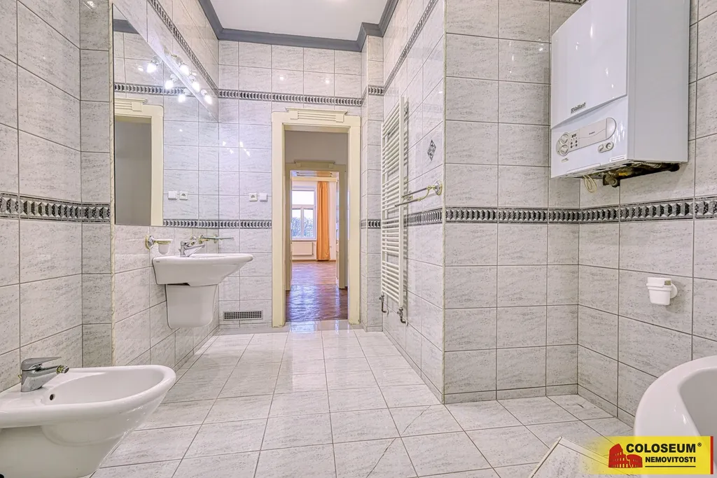 Velkým benefitem bytu je velká koupelna o výměře přibližně 7,07 m², vybavená rohovou vanou i sprchovým koutem. Samozřejmostí je samostatné WC o výměře 1,46 m². Kuchyně má orientační plochu cca 17 m², předsíň nabízí velkorysých přibližně 17,05 m², obývací pokoj má cca 29,65 m², další pokoje pak zhruba 16,39 m² a 7,3 m². K bytu náleží také sklep o velikosti přibližně 9,2 m².