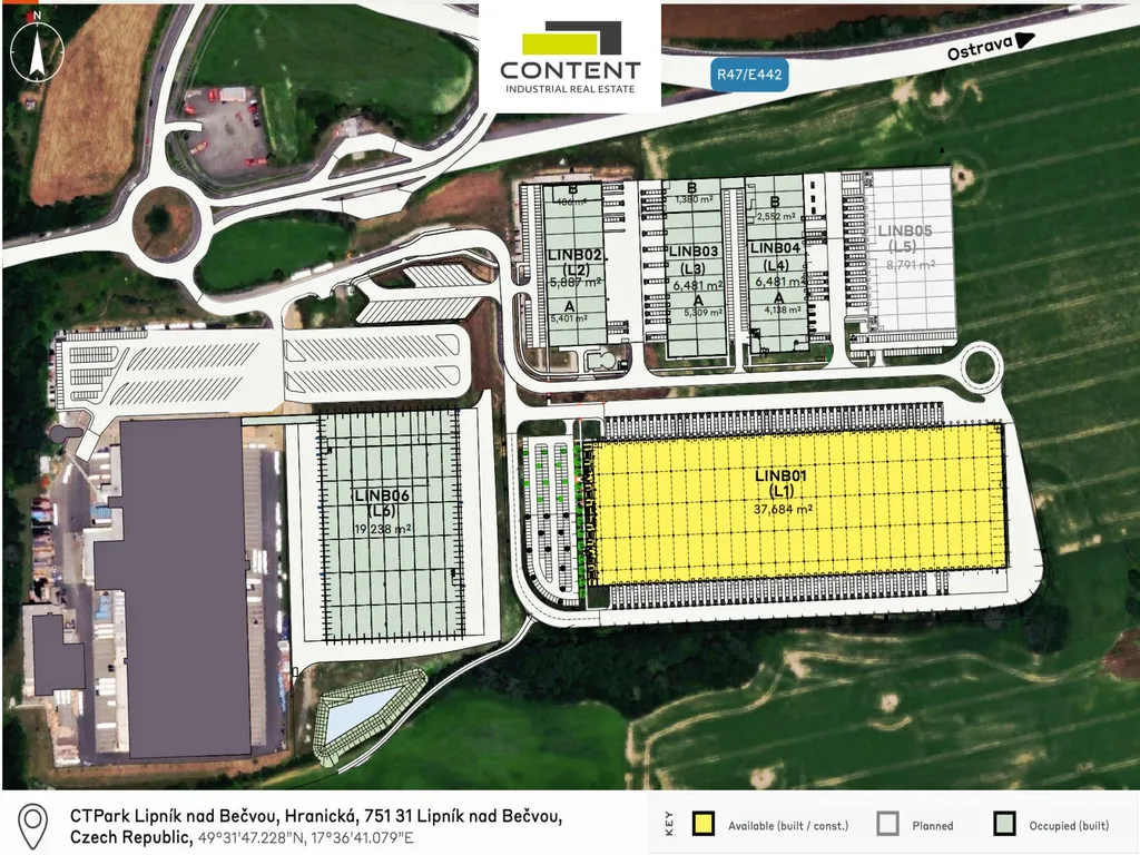 - v areálu ihned k dispozici prostory od cca 1200 m²