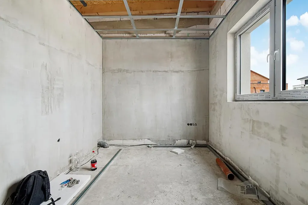 Na domě aktuálně probíhají dokončovací práce, konkrétně pokládka podlah a dlažby. Stále máte možnost vybrat si sanitu podle vlastních představ.