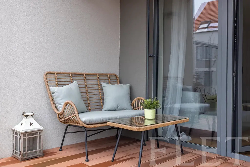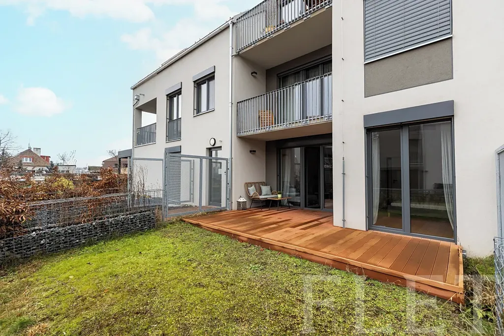 Velkým benefitem je soukromá zahrádka o velikosti 48 m², orientovaná na jih do klidného, soukromého vnitrobloku. Díky dřevěné terase nabízí ideální prostor pro relaxaci, posezení s přáteli i klidné chvíle po práci. K bytu navíc náleží také soukromá terasa v posledním patře domu, odkud si můžete vychutnat příjemné výhledy do okolí.