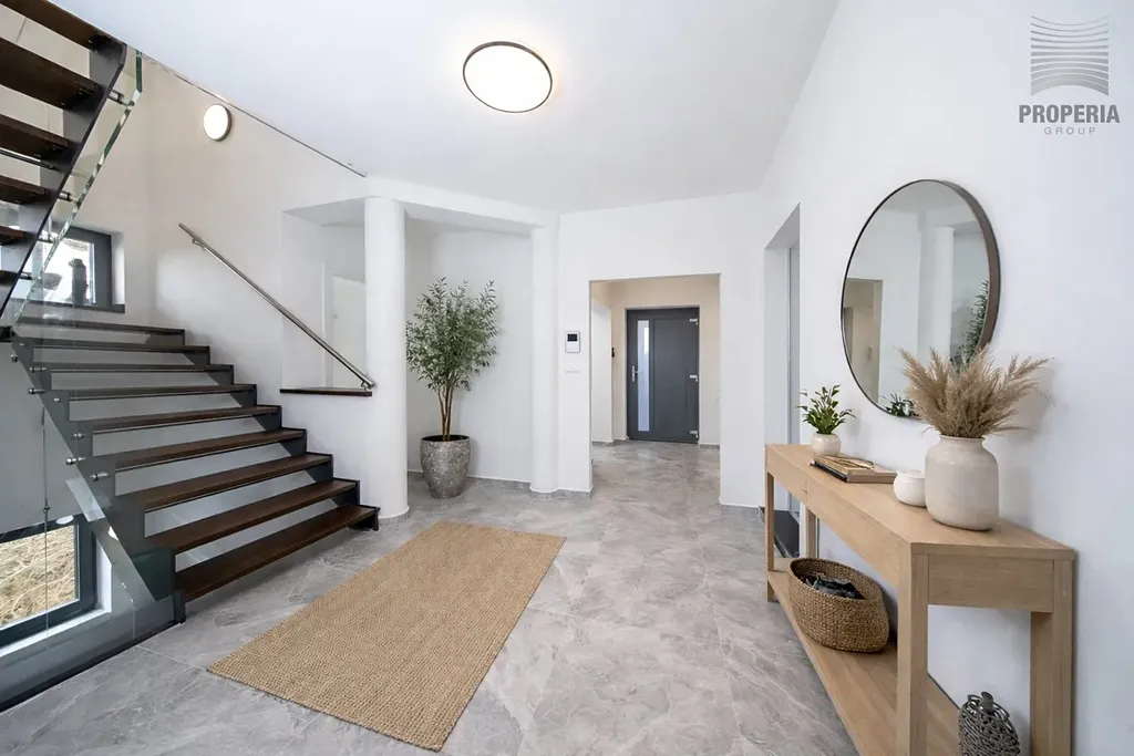 Dům. Bez adjektiv, nepotřebuje je. Pokud chcete bydlet kousek od Brna, chcete bydlet tady. V tomto domě v Říčanech.