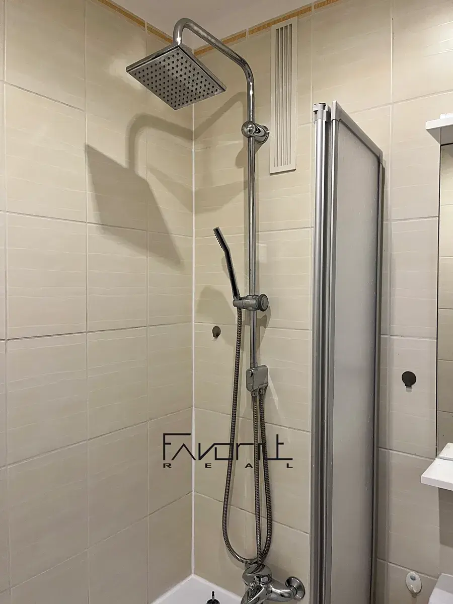 Koupelna je vybavena vanou, umyvadlem s bílou skříňkou a zrcadlovou skříňkou nad umyvadlem, dvěma pákovými bateriemi a přípojkou na pračku. Osvětlení je řešeno halogenovými stropními svítidly (2 ks).