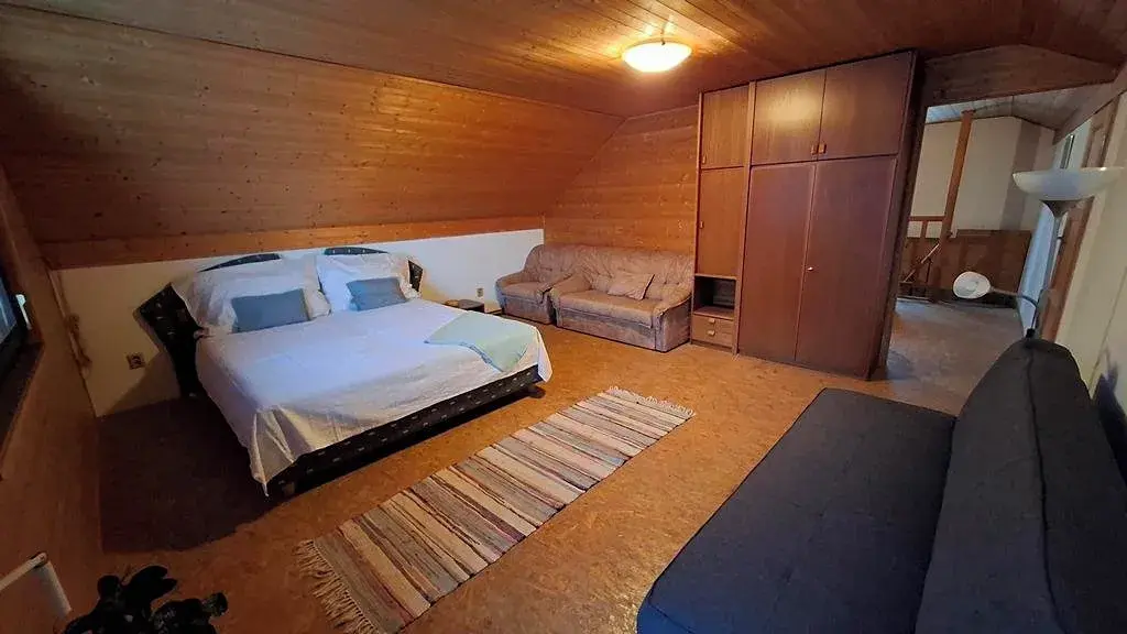 2. NP/podkroví - 2 x průchozí pokoj s výměrou 18 a 14 m2 a orientací východ (s lodžií 8 m2) a západ, půdní prostor ve střešní šikmině 25 m2 (všechny výměry jsou zaokrouhleny).