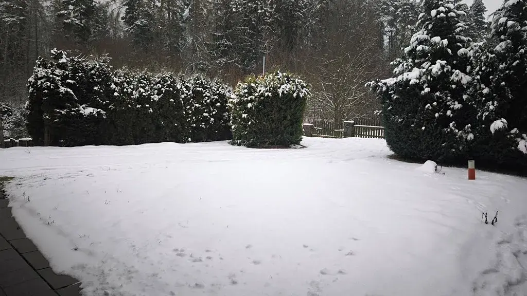 Zahrada uvnitř které je dům situován je rovinatého charakteru, zatravněná bez pěstebních záhonů a s okrasnými jehličnany, které tvoří optickou "bariéru" od příjezdové obecní komunikace. Příjezdová i spojovací cesta vč. park. stání uvnitř pozemku je dlážděná.