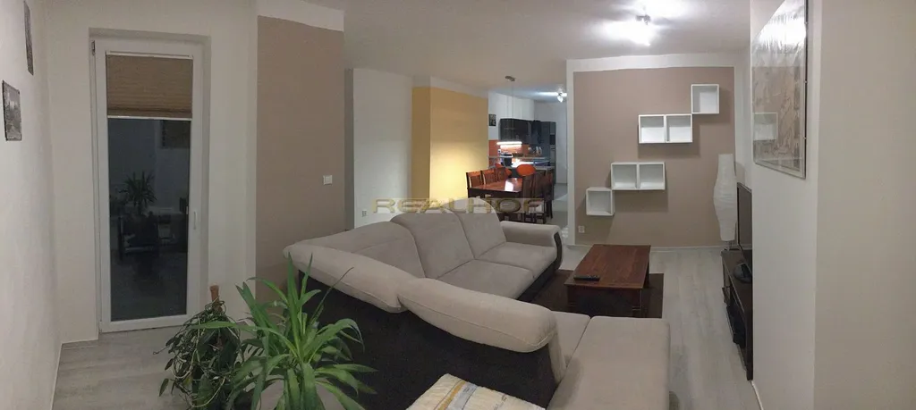 Pronájem prostorného bytu 3+kk s terasou a parkováním v Olomučanech. Výměra bytu činí 99m² + terasa 12m². Byt je situován v 1. patře bytového domu. Dispozice: vstupní předsíň, obývací pokoj s jídelnou a kuchyňským koutem, 2 ložnice z toho jedna je průchozí, velká koupelna s vanou, sprchovým koutem a WC, 2. WC zvlášť, velká šatna v bytě. V obývacím pokoji je vstup na prostornou terasu. Byt je nadstandardně vybaven: kuchyňská linka na míru se spotřebiči sklokeramická deska, elektrická trouba, lednička s mrazákem, myčka nádobí, stůl se židlemi, velká sedačka, manželská postel, skříně, žaluzie - plisé. V bytě není pračka. Podlahy: vinyl, dlažba. Obložkové zárubně a dveře SAPELI. K bytu patří 2 komory v přízemí domu. Parkovací místa pro dvě auta jsou na dvoře za bránou na dálkové ovládání. Měsíční zálohy na energie a služby ve výši 8 200,- Kč jsou zahrnuty v ceně nájmu. Vratná kauce 3 měsíční nájmy, provize jeden měsíční nájem. Volné od dubna.