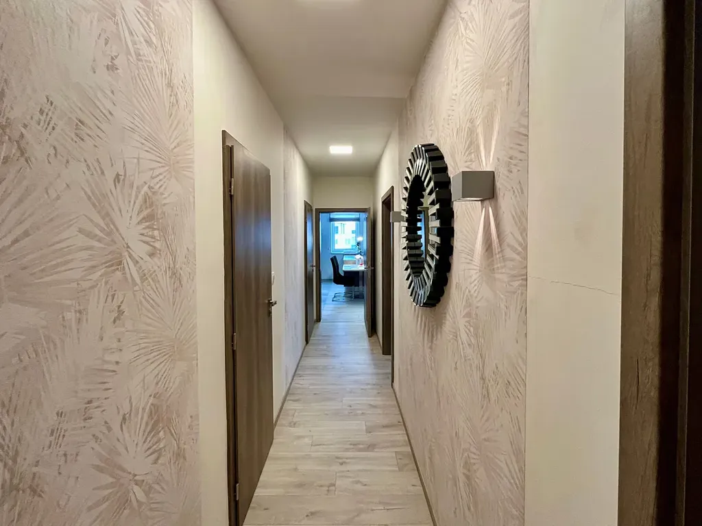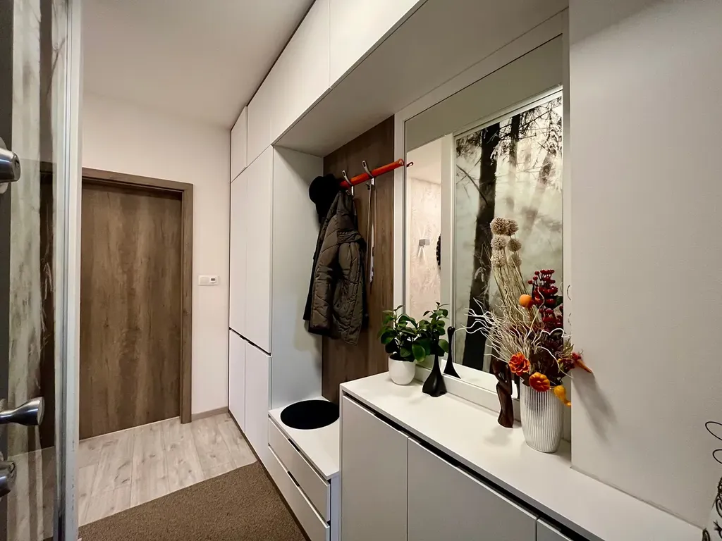 Nabízíme k pronájmu nadstandardně vybavený byt 3+kk s garážovým stáním ve Slovenské ulici v lokalitě Horní Kosov v Jihlavě. Jedná se o výjimečný byt, zařízený kompletně na zakázku, bytová jednotka má plochu 76,4 m2 + lodžie 6 m2, s orientací obytných místností k jihu do klidového prostoru. Garážové stání se nachází v hromadných garážích v suterénu domu, dům je s výtahem, bezbariérový. Kromě kompletního zařízení, které je součástí pronájmu, je byt vybaven kuchyňskou linkou se spotřebiči (varná deska, 2 trouby, digestoř, lednice s mrazákem, myčka, dále pračka a sušička, televize). K pronajímanému bytu není k dispozici sklep. Nemovitost se nachází v klidné lokalitě, v blízkostí MHD a s dobrým příjezdem autem, včetně možnosti veřejného parkování. Výhodou je okrajová část města a blízkost přírody, 1,5 km od řeky Jihlavy a přírodní památky Zaječí skok, v okolí cyklostezky i pěší trasy.