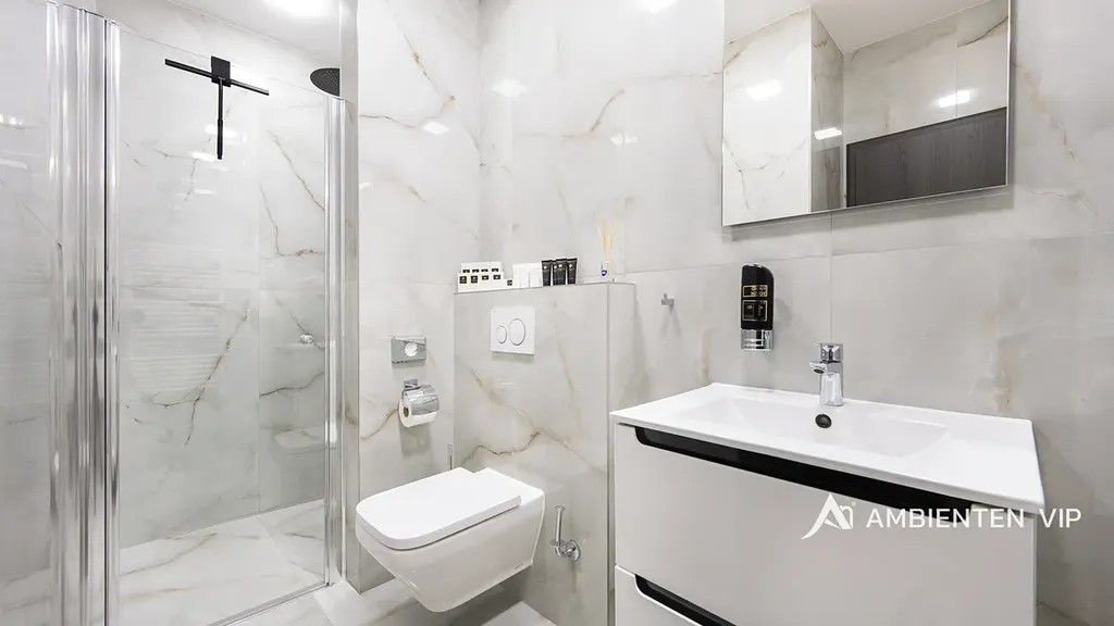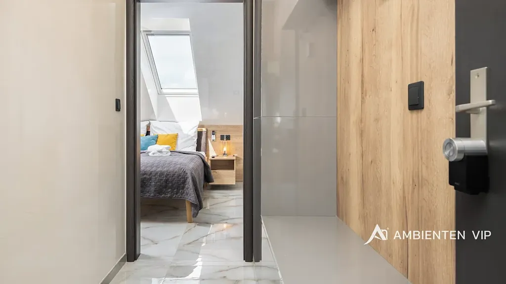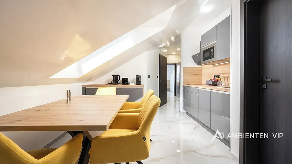 AMBIENTEN VIP exkluzivně nabízí pronájem luxusní bytové jednotky 3+kk o výměře 54 m² se sdílenou terasou s posezením. Od května do října je nájemcům k dispozici i společný bazén Parkování je zajištěné přímo před nemovitostí.