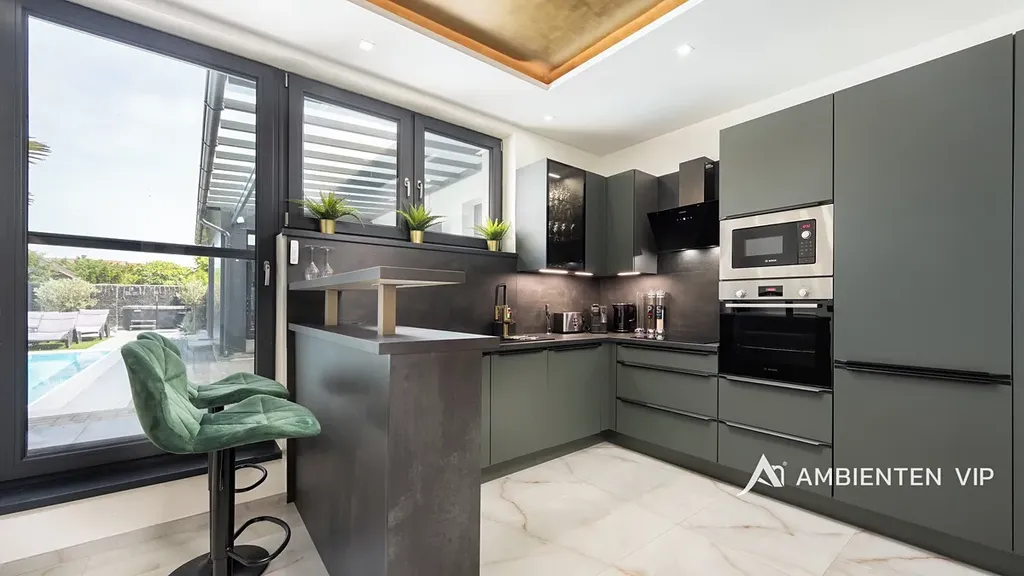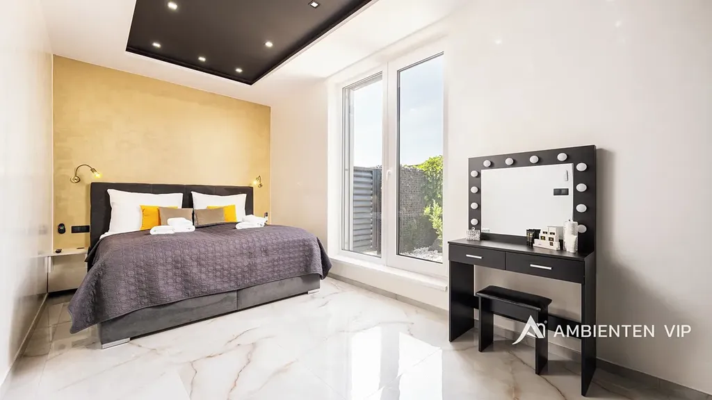 AMBIENTEN VIP exkluzivně nabízí pronájem luxusní bytové jednotky 3+kk o výměře 80 m². K bytu náleží vlastní terasa s posezením a venkovní kuchyní s grilem. Od května do října je nájemcům k dispozici i společný bazén. Parkování je zajištěné přímo před nemovitostí.