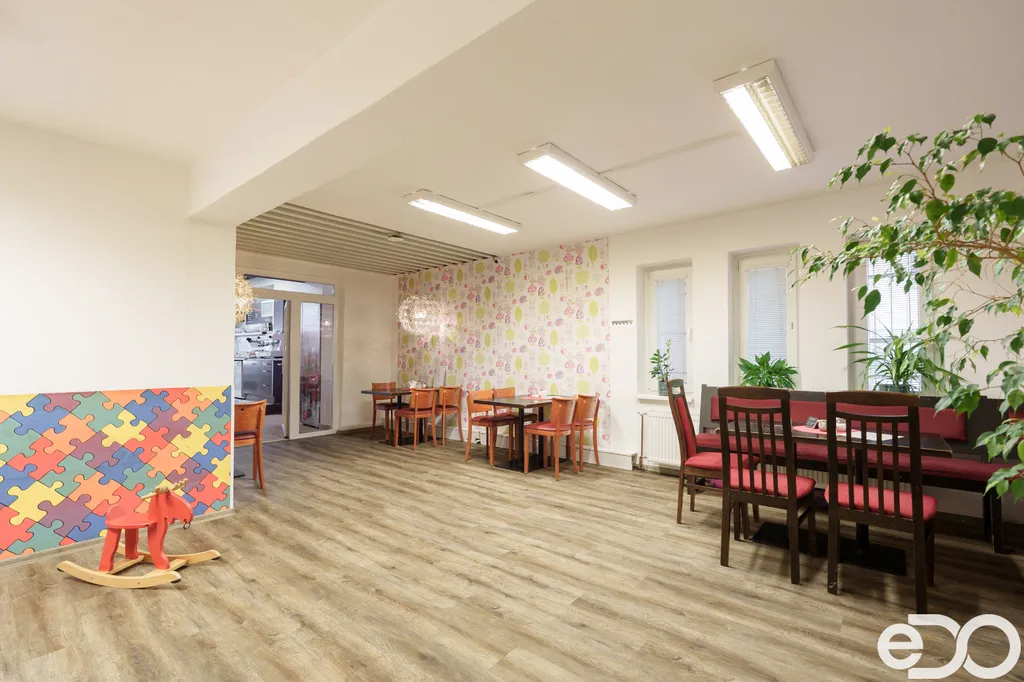 Dominantou je hlavní místnost s posezením, nechybí ani dětský koutek, který ocení hlavně rodiny s dětmi – a právě ty sem chodí velmi rády.