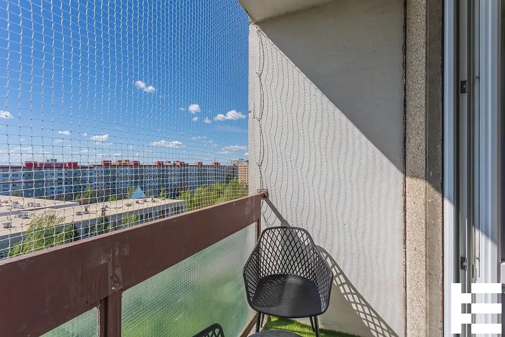 Bytová jednotka se skládá z obývacího pokoje s kuchyňským koutem, ložnice, koupelny s toaletou a vstupní chodby. K dispozici je balkon, ideální k ranní kávě nebo večernímu posezení a je k dispozici i sklep. Panelový dům je ve dobrém a udržovaném stavu, po částečné rekonstrukci – má nová okna a zateplenou fasádu. Celkově má 8 podlaží, byt se nachází v 5. NP s výtahem.