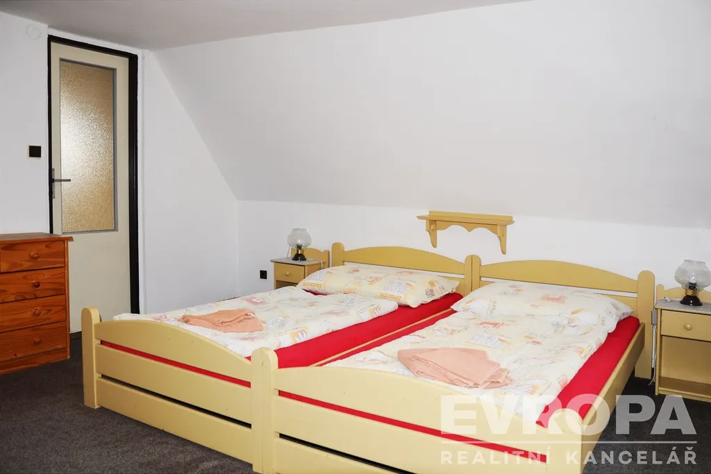 Penzion je situován u hlavní průjezdové silnice obcí a vybízí k zastavení za účelem příjemného posezení a relaxace v průběhu všech sportovních aktivit, které lze v okolí realizovat. V blízkosti autobusové zastávky. Tato nemovitost je vhodná pro zájemce, kteří hledají seberealizaci v jedinečné lokalitě. V případě zájmu o prohlídku nás neváhejte kontaktovat.
