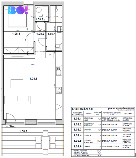 Kompletně nový a plně vybavený apartmán 2+kk 61,4 m² a terasa 17,4 m².