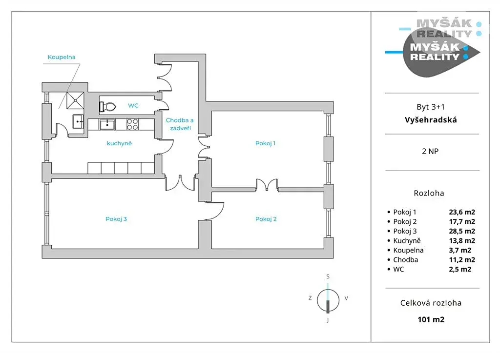 Prodej bytu 3+1, Praha - Nové Město, Vyšehradská, 102 m2