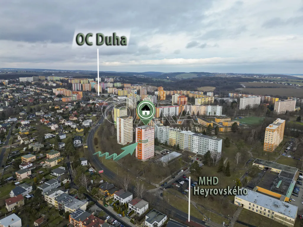 Velkou předností tohoto bytu je jeho lokalita, která nabízí ideální kombinaci městského komfortu a blízkosti přírody. Autobusová zastávka Heyrovského je vzdálena pouhé 3 minuty chůze, tramvajová zastávka Martinovská je dostupná do 10 minut pěšky, což zajišťuje rychlé spojení po celé Ostravě.
