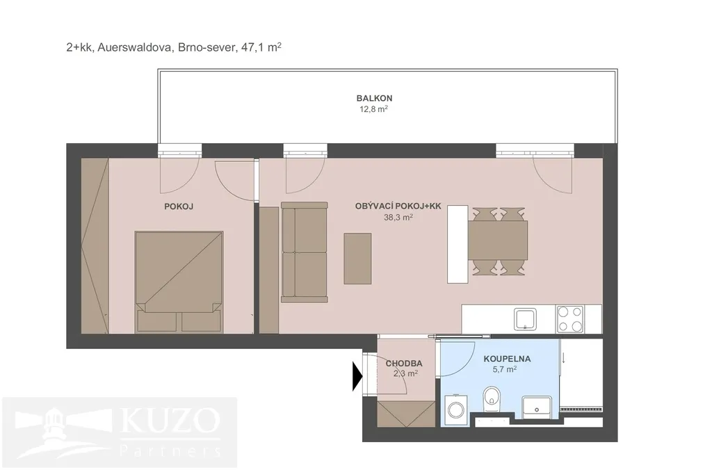 Pronájem bytu 2+kk, Brno, Auerswaldova, 47 m2 (ID: 1962823)