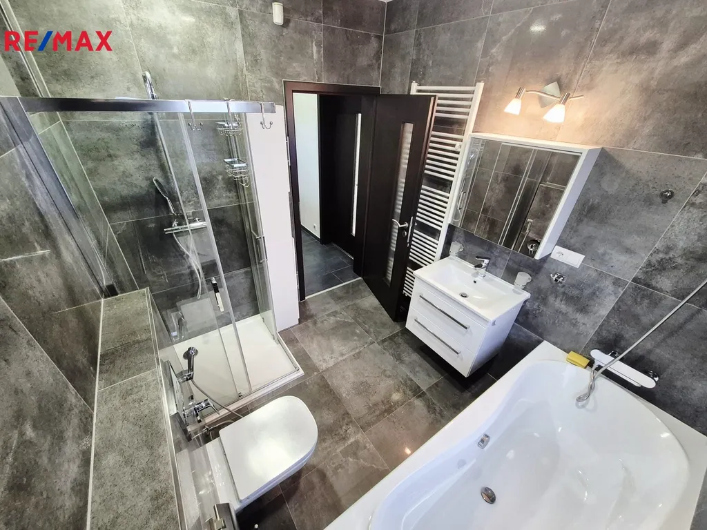 Obývací pokoj s kuchyňským koutem a dva další pokoje jsou vybaveny klimatizací. V pokojích jsou plovoucí podlahy, v ostatních místnostech dlažba. Všechna okna mají vnitřní i elektronicky ovládané venkovní žaluzie. Vytápění domu zajišťuje plynový kotel zn. Junkers. Dům je zabezpečen alarmem. Prostorná garáž nabízí kromě parkování také dostatek místa pro uskladnění dalších věcí. Velkou výhodou je přímé propojení domu s garáží, díky kterému se do interiéru dostanete „suchou nohou“. Převážně západní orientace zajišťuje dostatek denního světla v obytných prostorách a příjemné posezení na terase či zahradě. Na zahradě se nachází zahradní domek, její údržbu zajišťuje robotická sekačka. Energetický štítek v přípravě, do doby dodání proto uvádíme kategorii G.