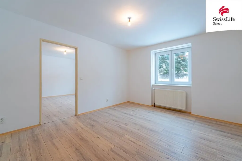 Dispozice: vstupní chodba, kuchyně, obývací pokoj, ložnice, dětský pokoj, koupelna a samostatné WC. K bytu náleží tři sklepní prostory o celkové výměře 30 m, které poskytují dostatek úložného prostoru nebo hobby dílny.