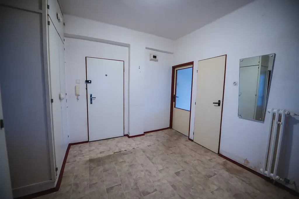 Má zděné příčky, je nutná modernizace bytu – kuchyň, koupelna, dveře, elektroinstalace. Parkety