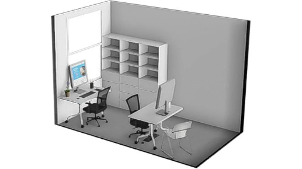 Nabízený prostor tvoří samostatná menší kancelář o velikosti cca 12 m², vhodná pro jedno až dvě pracovní místa. Místnost se nabízí bez vybavení. Kancelář disponuje oknem orientovaným do klidné části objektu. Na chodbě jsou společné prostory jako je WC nebo zasedací místnost, kterou si lze pronajmout za poplatek. Zasedací místnost je vybavena velkým stolem se židlemi, křesly, televizemi a dalším nábytkem včetně kuchyňské linky s dřezem a lednicí.
