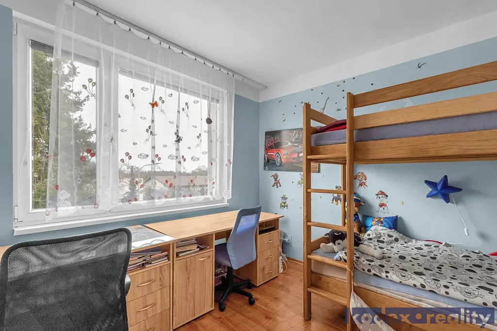 Dispozice: vstupní chodba s úložným prostorem a místem na lokální kotel, koupelna s vanou, WC, kuchyň, obývací pokoj se vstupem na rekonstruovanou lodžii, dětský pokoj, ložnice, sklepní kóje v suterénu budovy.