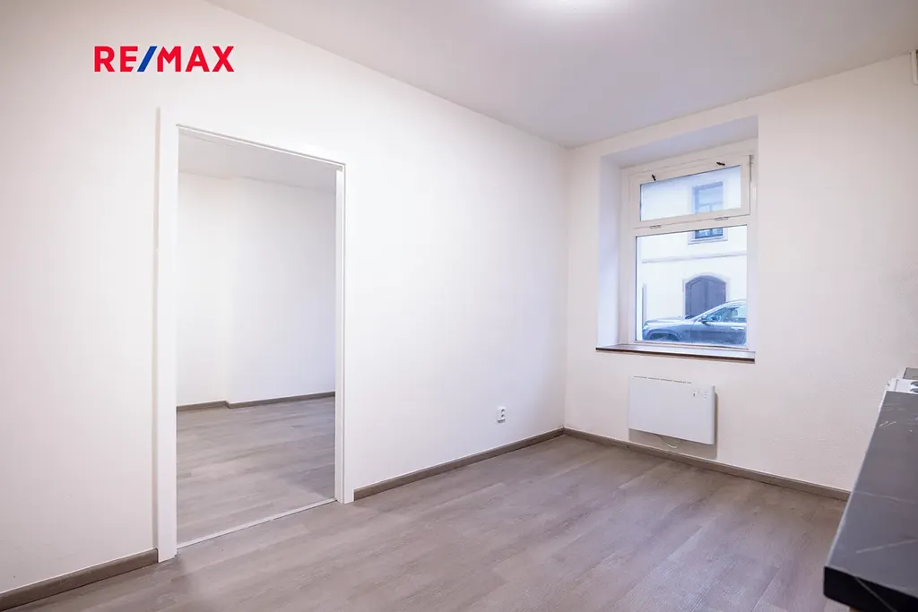 V přízemí se nachází byt o velikosti 67 m², dispozičně řešený jako 2+1, s prostornou koupelnou a samostatným WC.