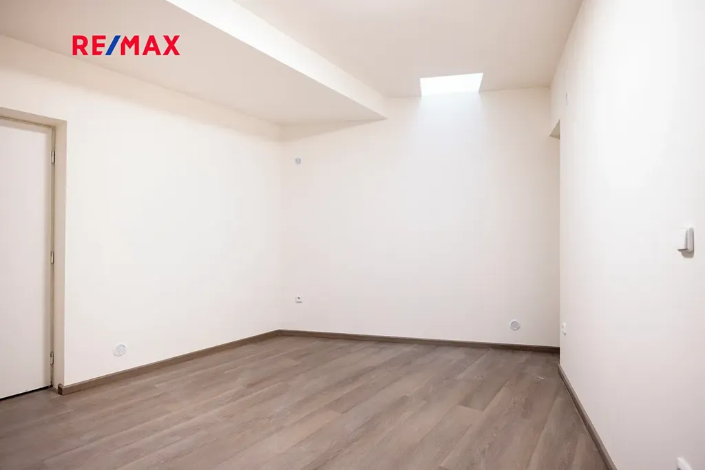 V patře je byt o velikosti 48 m² s dispozicí 2+1, novou moderní kuchyňskou linkou a klidnou terasou o rozloze téměř 19 m², ideální pro odpočinek a relax.
