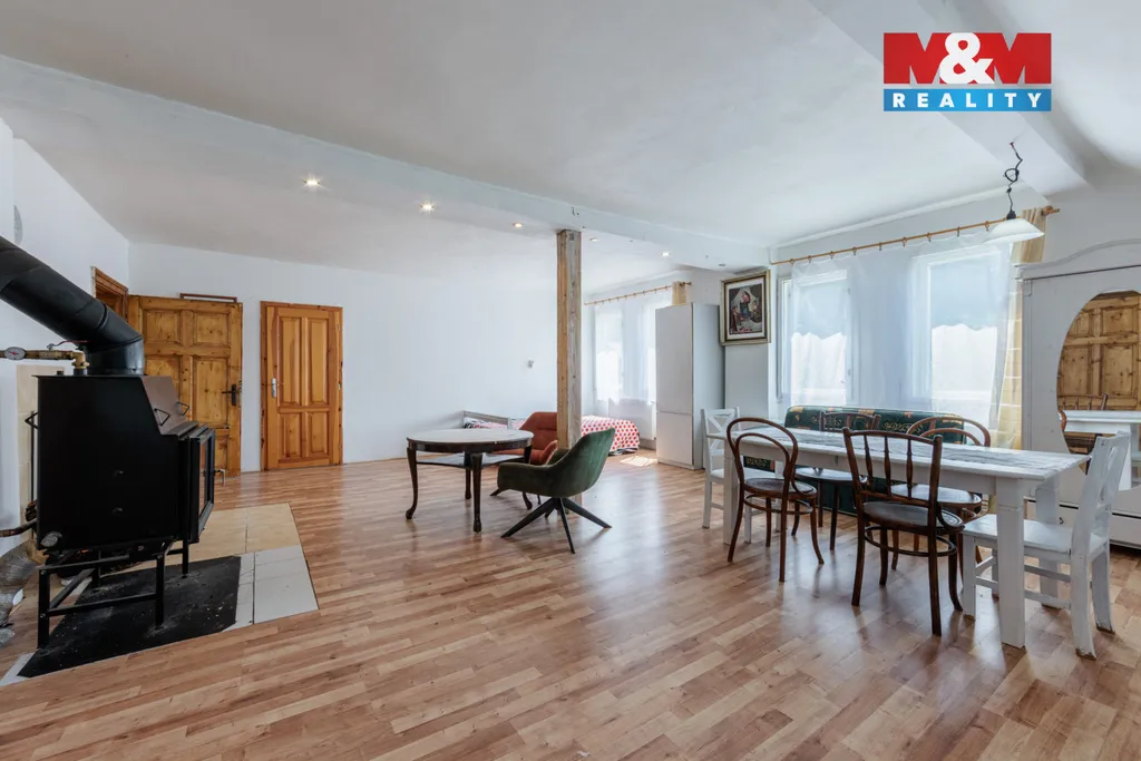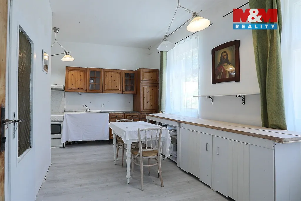 Nabízíme prostorný rodinný dům z roku 1910, který prošel částečnými úpravami a je připraven k okamžitému užívání. V přízemí se nachází obývací pokoj s krbem, dvě ložnice, kuchyň a menší koupelna. V patře je velký obývací pokoj s kuchyňskou linkou, jídelním koutem a krbem, dvě ložnice, z nichž jedna má vlastní koupelnu se sprchovým koutem. Prostorná půda a sklep nabízejí další možnosti využití.