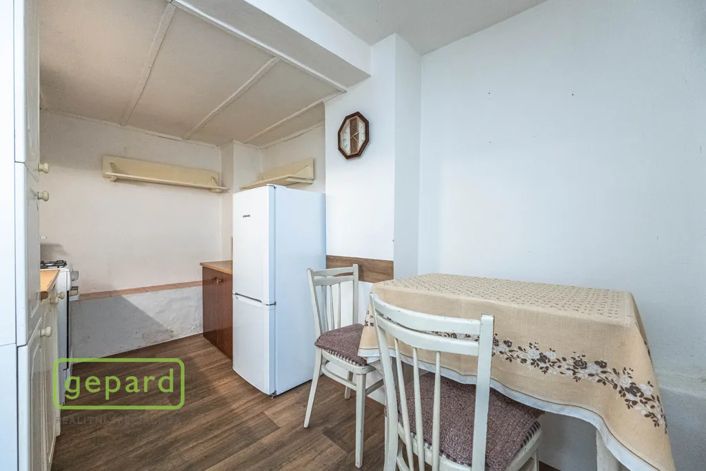 Gepard Reality nabízí ke koupi malý rodinný dům v obci Zlosyň o dispozici 2+1 a výměře podlahové plochy 71,95m2. Nemovitost stojí na vlastním pozemku o celkové výměře 104m2 (zastavěná plocha 88m2), a je napojena na kompletní inženýrské sítě (elektřina, plyn, vodovod a kanalizace). Dům je v původním stavu a tedy vhodný ke kompletní rekonstrukci. V rámci této rekonstrukce je možné vybudovat obytné podkroví a zvětšit tak podlahovou plochu domu.
