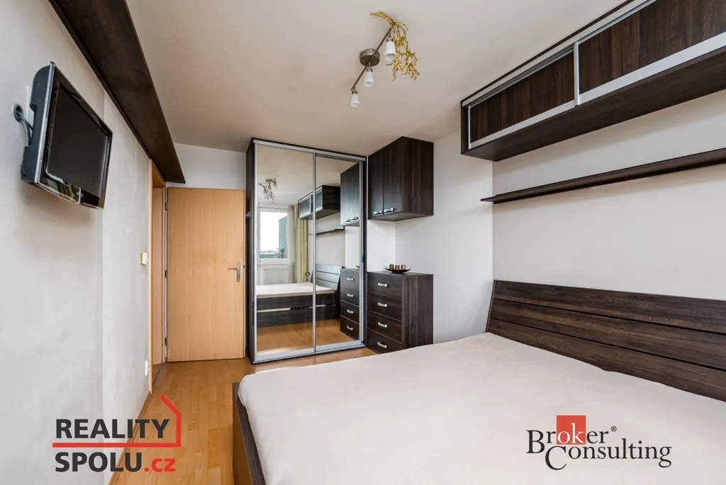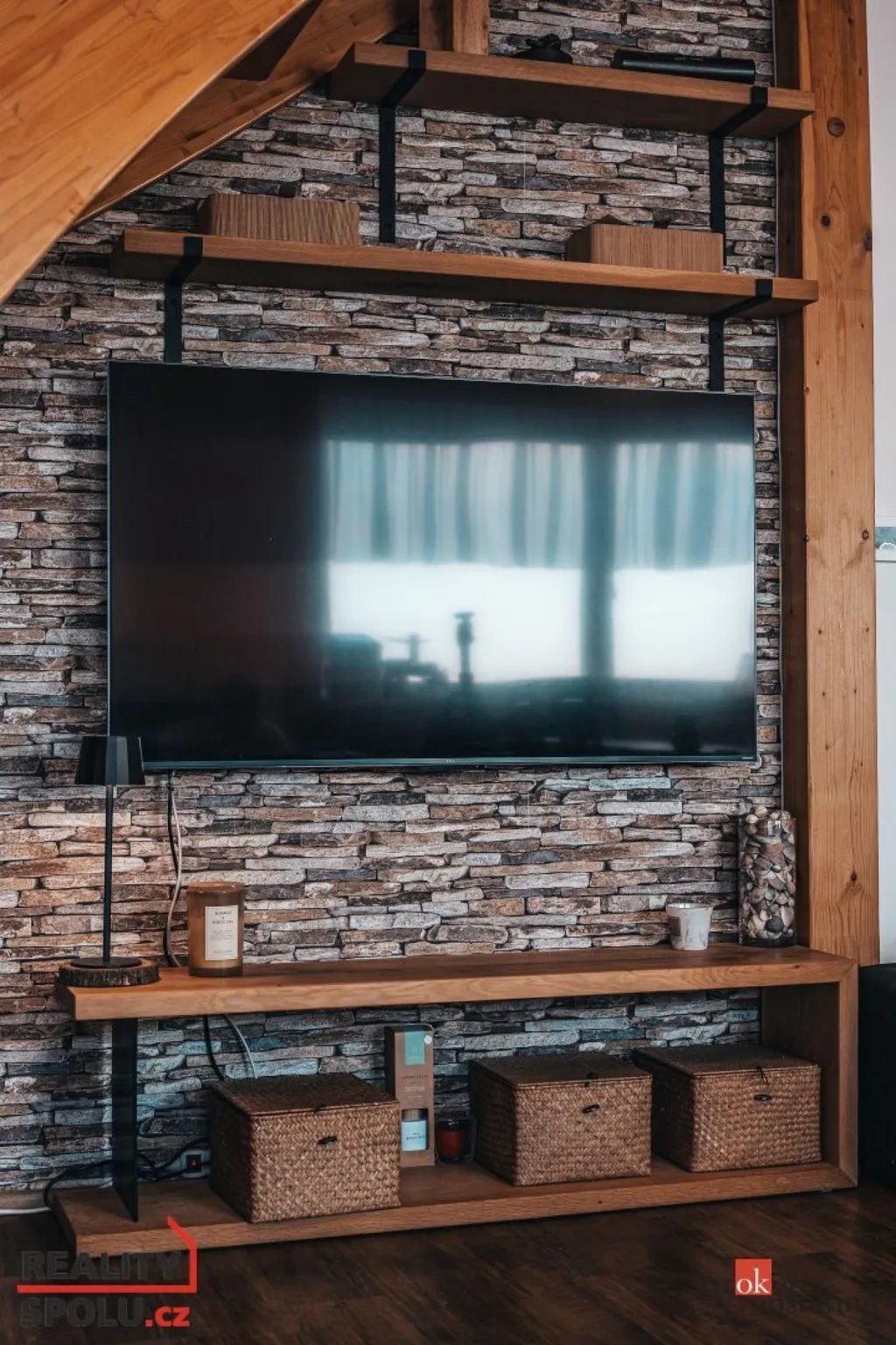 Byt o celkové ploše 92 m² je díky svému dvoupodlažnímu uspořádání výjimečný – nabízí přirozené oddělení společenské a klidové části. Spodní patro tvoří prostorná předsíň s toaletou a světlý obývací prostor s plně vybaveným kuchyňským koutem. V horním patře se nachází nástavba využitelná jako pracovna, dále dva útulné pokoje sloužící jako ložnice a dětský pokoj, šatna a koupelna. Díky umístění v posledním patře působí byt vzdušně, poskytuje příjemný klid od ruchu okolí a nabízí krásné výhledy.