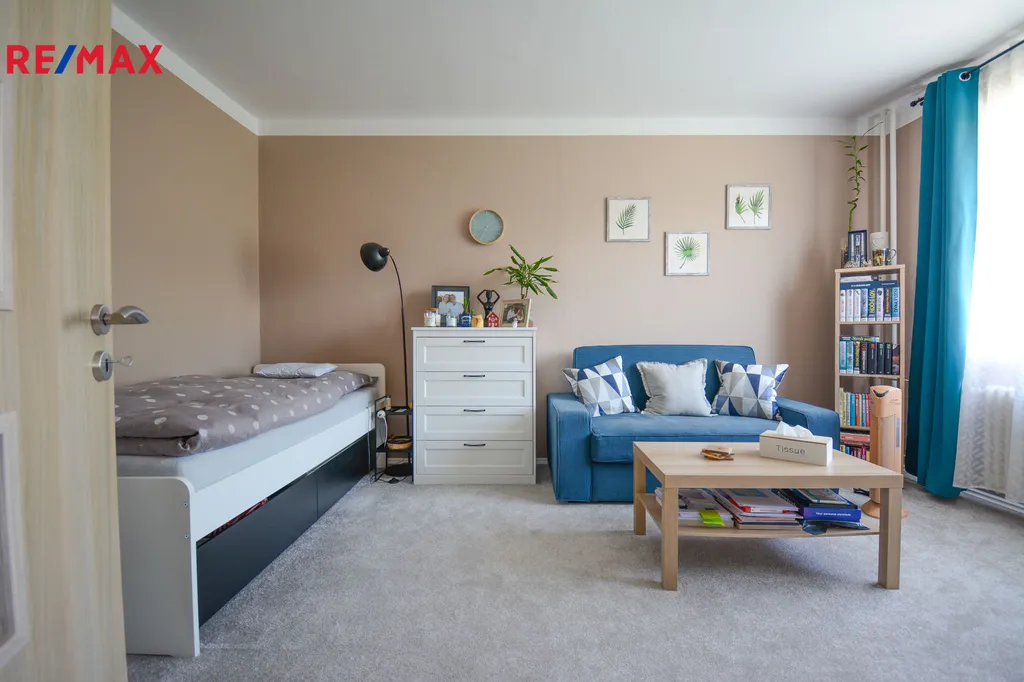 Byt nabízí vstupní chodbu s vestavěnou šatní skříní, koupelnu se sprchovým koutem společně s WC, novou kuchyň s vestavěnou elektrickou troubou a plynovým sporákem, prostorný pokoj do kterého se vám vejde postel i malý gauč. Byt prošel celkovou rekonstrukcí a nabízí tak příjemné bydlení v klidné lokalitě. Okna bytu jsou plastová orientovaná na jihovýchod, nové bytové jádro, nové vchodové bezpečnostní dveře, nové rozvody elektřiny v celém bytě i pro koupelnu a kuchyň, nové rozvody vody a odpadů v plastu, nové podlahy.