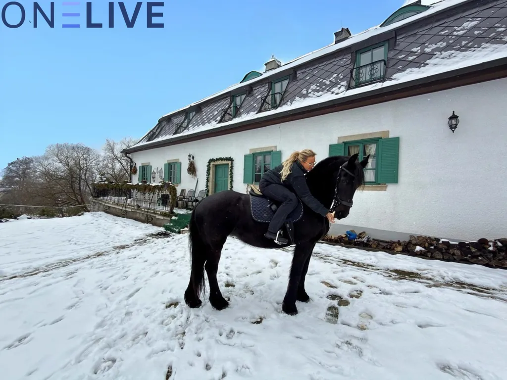 Součástí areálu je druhá budova se stájí — 4 boxy, sedlovna, krmírna a automatické napáječky. Může sloužit pro koně, ale stejně dobře jako dílna, garáže, ateliér či dokonalý pánský klub, kam by – jako na Karlštejn – ženám byl vstup zakázán a tajemství by přikryl dým z kvalitních doutníků.