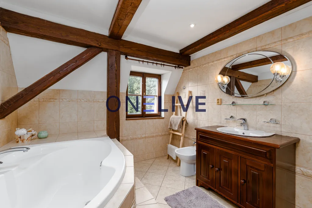 Samotný dům o ploše cca 650 m² je nyní rozdělen na 4 byty (5 koupelen, 8 WC, 5 kuchyní), ale lze jej jednoduše proměnit na velkorysé rodinné sídlo, vícegenerační bydlení nebo kombinaci bydlení a podnikání.