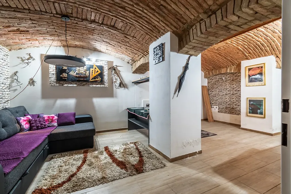 Bytová jednotka nabídne tři průchozí pokoje, zařízenou kuchyň a koupelnu s WC. Ateliér nabízí obývací pokoj s přípravou pro kk, koupelnu s rohovou vanu + WC, sklad a vinný sklípek. Tento prostor je propojený vnitřním schodištěm. Podlahovou krytinu tvoří keramická dlažba.