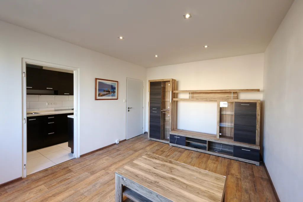 V obývacím pokoji zůstává obývací stěna a konferenční stolek.