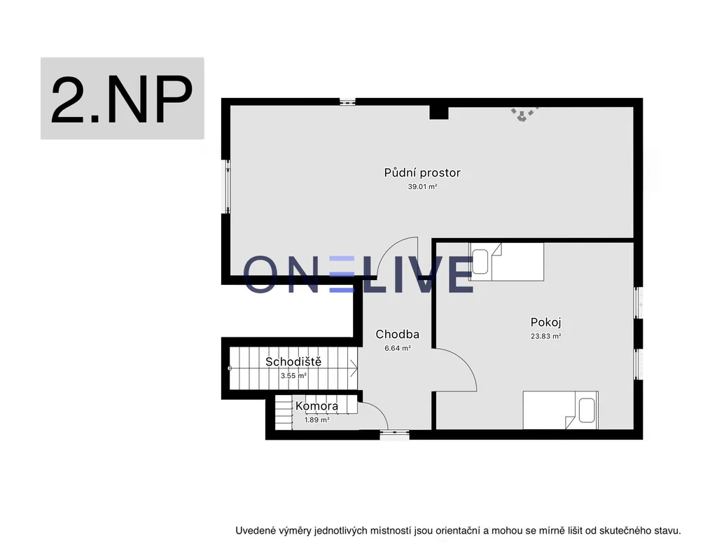- cca 39 m² v patře