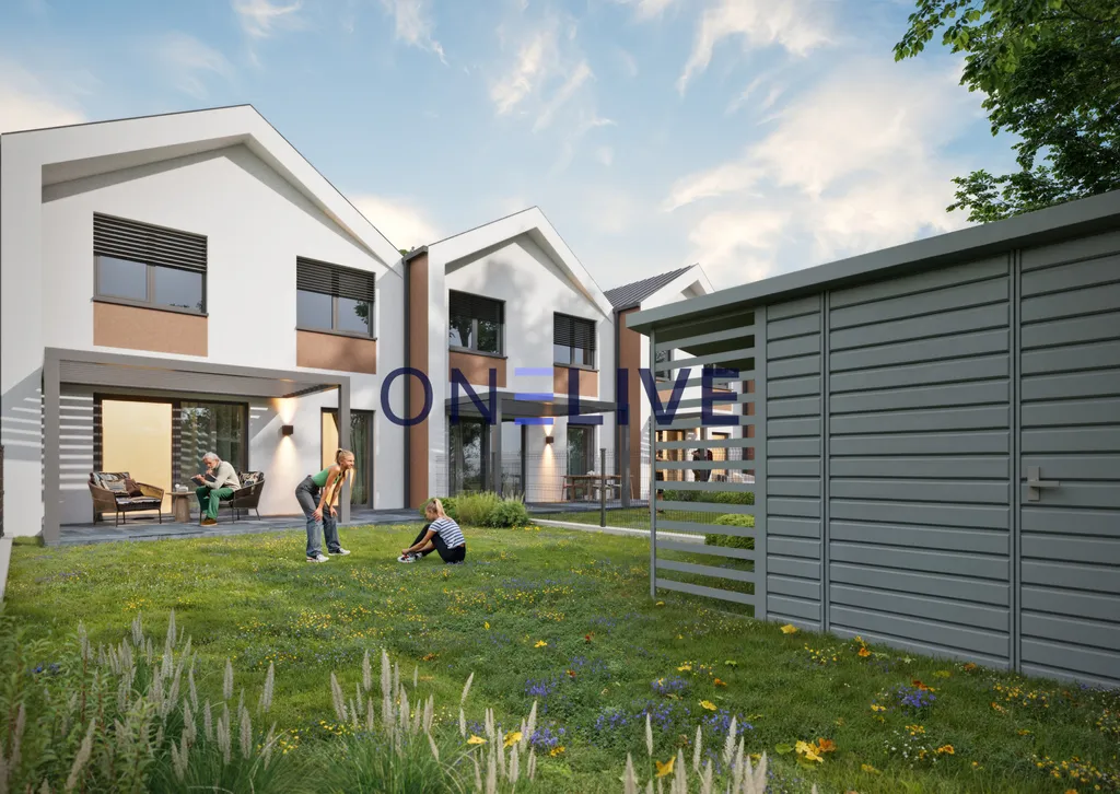 Nabízené řadové domy mají podlahovou plochu 95,85 m², terasu a závětří o celkové výměře 17,84 m² a pozemky o velikosti od 203 m² do 481 m². Dispozičně jsou řešeny v 1. nadzemním podlaží obývacím prostorem s kuchyňským koutem a přímým vstupem na terasu, přičemž součástí kuchyňského koutu je také samostatná spíž sloužící jako praktický úložný prostor pro potraviny. Dále se zde nachází koupelna se sprchovým koutem, toaletou, umývátkem a technickým zázemím. Do 2. nadzemního podlaží vede železobetonové schodiště, kde jsou umístěny dva dětské pokoje, ložnice a druhá koupelna s vanou, dvojumyvadlem a toaletou. Koncový řadový dům s největším pozemkem disponuje větší podlahovou plochou oproti ostatním domům v řadě.