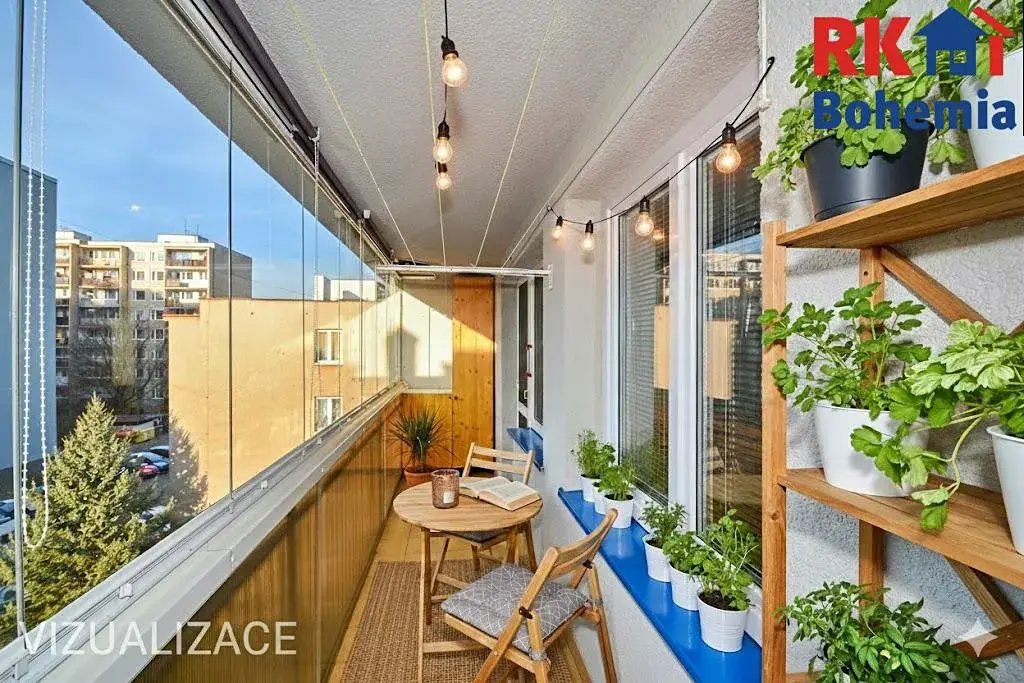 - Velkorysá lodžie: Z obývacího pokoje vstoupíte na prostornou zasklenou lodžii (8,66 m2), která slouží jako ideální místo pro relaxaci za každého počasí.