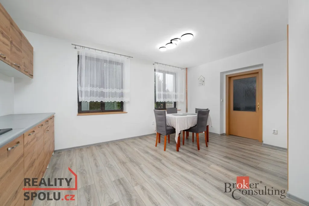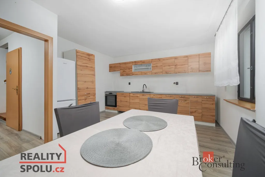 Dům je po částečné rekonstrukci, která už řešila praktické věci pro každodenní provoz – novější kuchyňskou linku a podlahy – a zároveň ponechává prostor doladit si interiér přesně podle svého stylu.