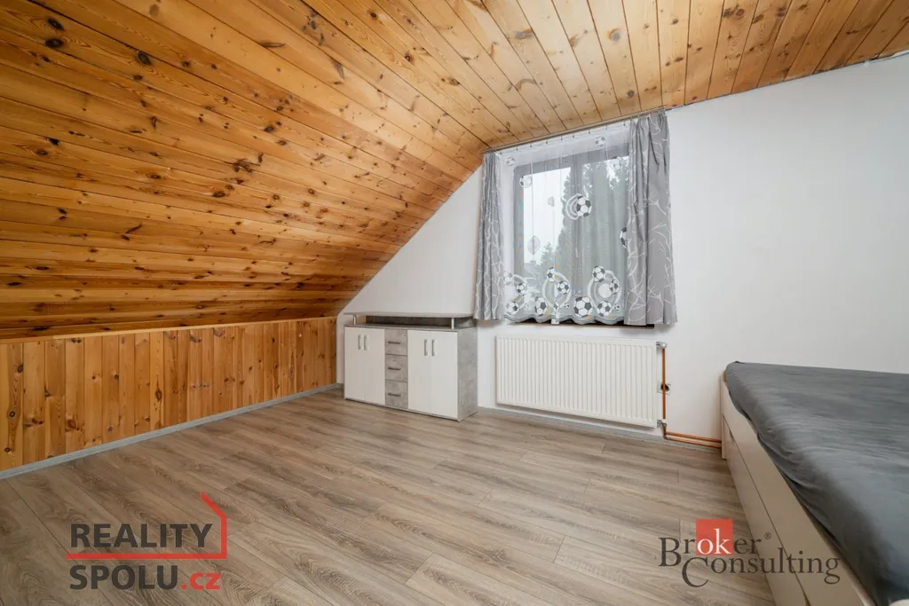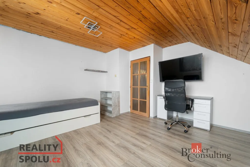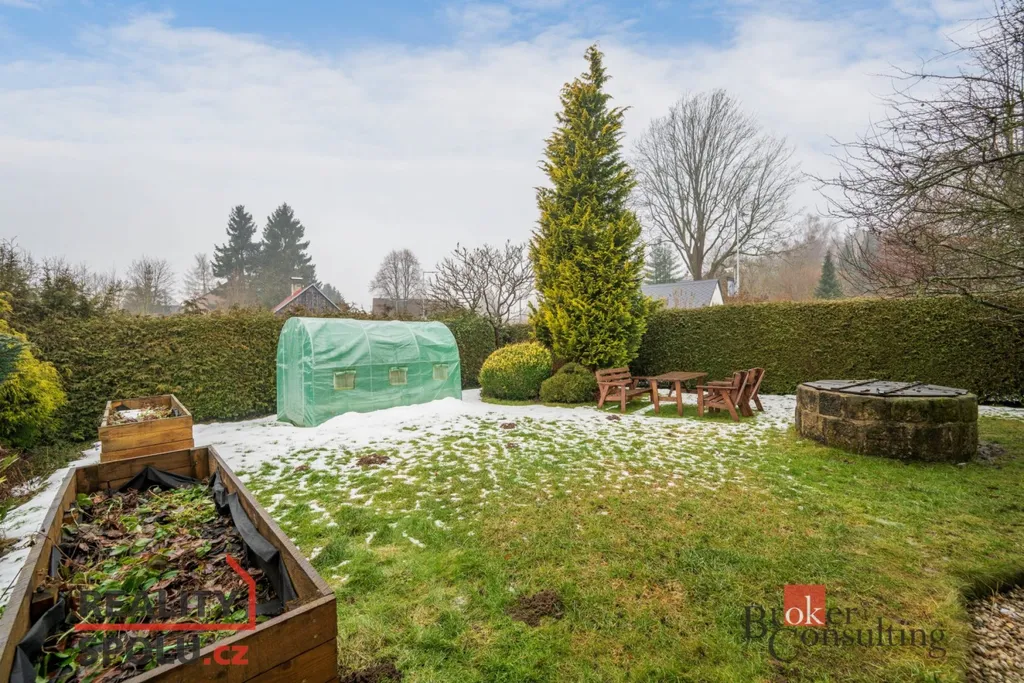 Ve 2. NP je další koupelna s WC a tři samostatné pokoje, které dobře fungují jako dětské pokoje, pracovna i pokoj pro hosty. Zahrada je příjemně členěná, osázená okrasnými dřevinami, najdete zde pařník, místo pro posezení i praktické přístřešky, které využijete ať už na parkování, dřevo nebo jako kryté venkovní zázemí. Lokalita kombinuje soukromí a zeleň s dostupností služeb v nedalekém Jablonném v Podještědí, kde je škola, školka, lékař, lékárna, pošta i obchody. Tenhle dům dává smysl, teprve na místě vynikne dispozice a jeho potenciál, zázemí v suterénu a atmosféra zahrady. Domluvte si s námi termín prohlídky.
