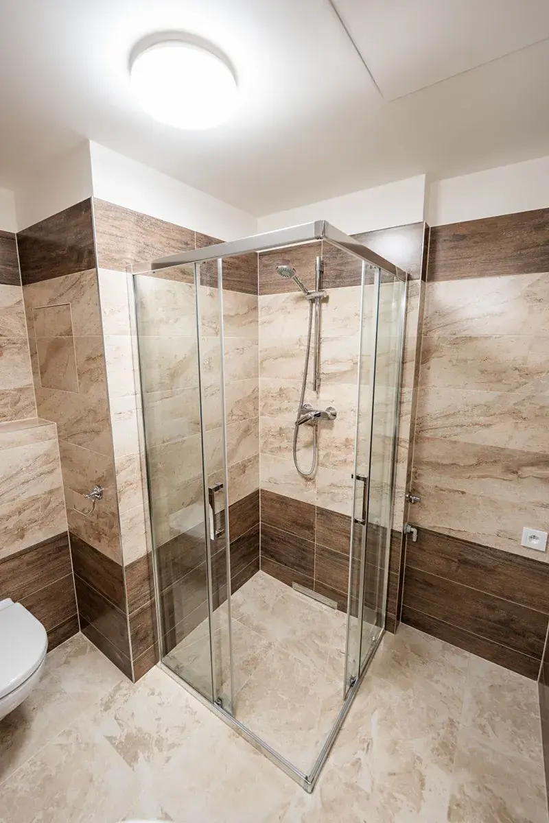 Dosud nebydlený byt je zařízený novou kuchyňskou linkou se elektrickou varnou deskou, troubou, lednicí a myčkou, v koupelně sprchový kout s WC. V předsíni vestavěná šatní skříň.