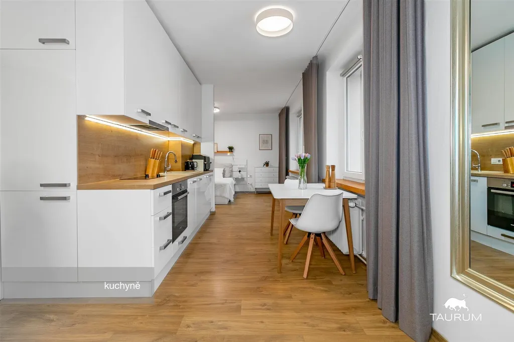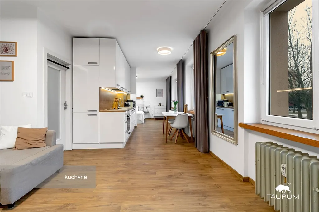 Byt nabízí světlý interiér, jednotný styl a jeho promyšlené řešení z něj dělají ideální bydlení pro jednotlivce nebo pár, kteří chtějí víc než jen čtyři stěny.