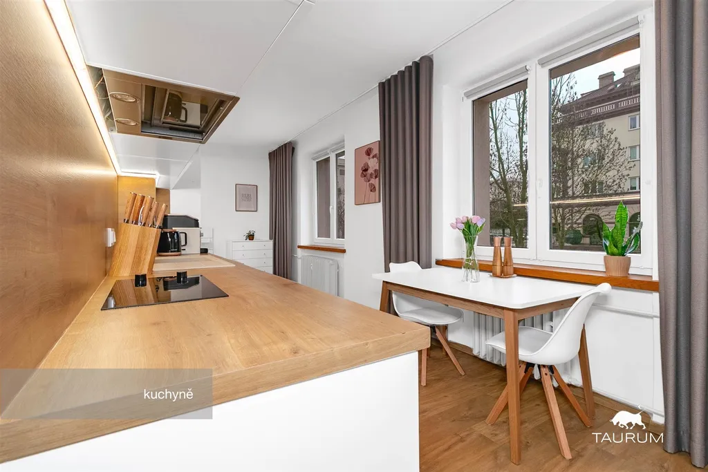 V roce 2021 prošel byt kompletní rekonstrukcí vč. zásadní změny dispozice, kdy se z původního 2+1 vytvořil moderní, otevřený a velmi příjemný prostor. Praktická a dostatečně velká je vstupní předsíň, moderní koupelna se sprchovým koutem a samostatnou toaletou. Promyšlené jsou také další detaily, jako např. prostor pro úschovy pračky či zabudovaná lednice s mrazákem v prostoru kuchyňské linky.