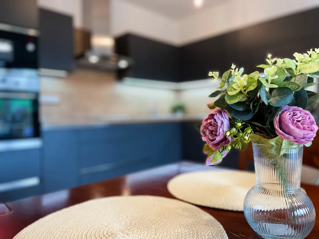 Dominantou bytu je prostorný obývací pokoj s kuchyňským koutem o velikosti cca 24 m², který působí světlým a otevřeným dojmem. Kuchyňská linka je vybavena spotřebiči (indukční varná deska, vestavná trouba, lednice) a přirozeně navazuje na jídelní část. Z obývacího pokoje je přímý vstup na lodžii, ideální místo pro ranní kávu nebo večerní relax.