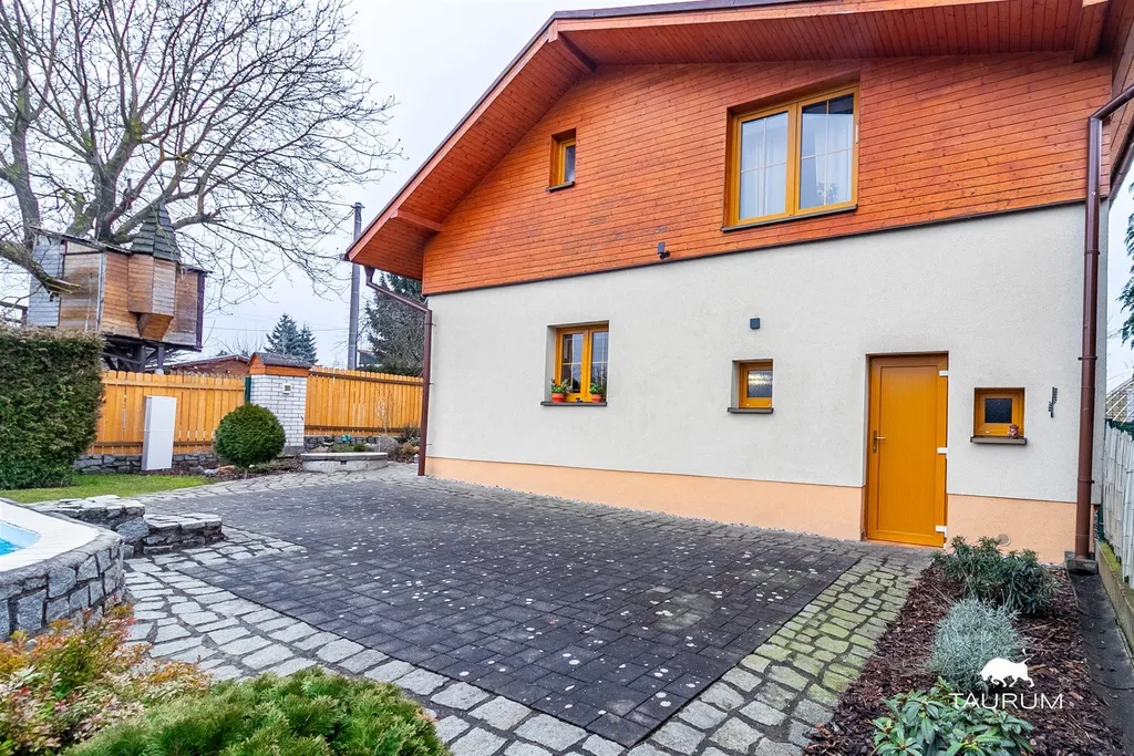 Na pozemku se nachází bazén, pergola pro posezení, skleník, dílna, kryté stání pro auto a další skladovací prostory v zadní části zahrady. Zahrada je přehledná, udržovaná a nabízí prostor jak pro odpočinek, tak pro aktivní trávení času.