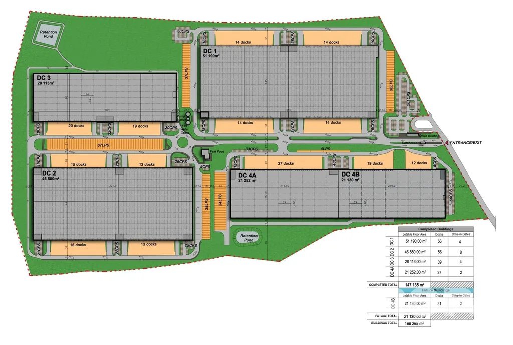 • Výborná dopravní dostupnost – přímé napojení na dálnici D8 (exit 9), strategická poloha u hlavní evropské trasy Praha – Německo (Hamburk) a blízkost letiště Prague Vodochody. Areál je také dobře dostupný MHD, což usnadňuje dojíždění budoucím zaměstnancům.